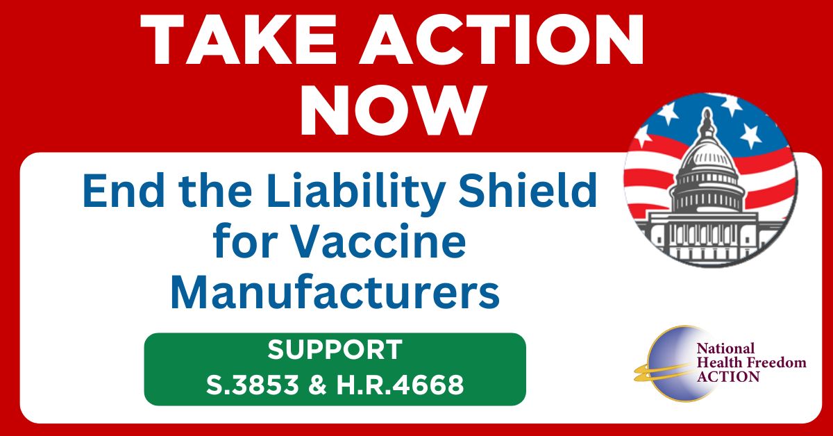 Act now to let your US House and Senate know that you support Senate Bill 3853 and House Bill H.R.4668 to end the liability shield for vaccine manufacturers!If the bills are signed into law, they would lift the current liability shield for vaccine manufacturers and allow people injured by vaccines to sue directly in state or federal court instead of filing a petition through VICP and also lift the liability shield for COVID-19 vaccines.