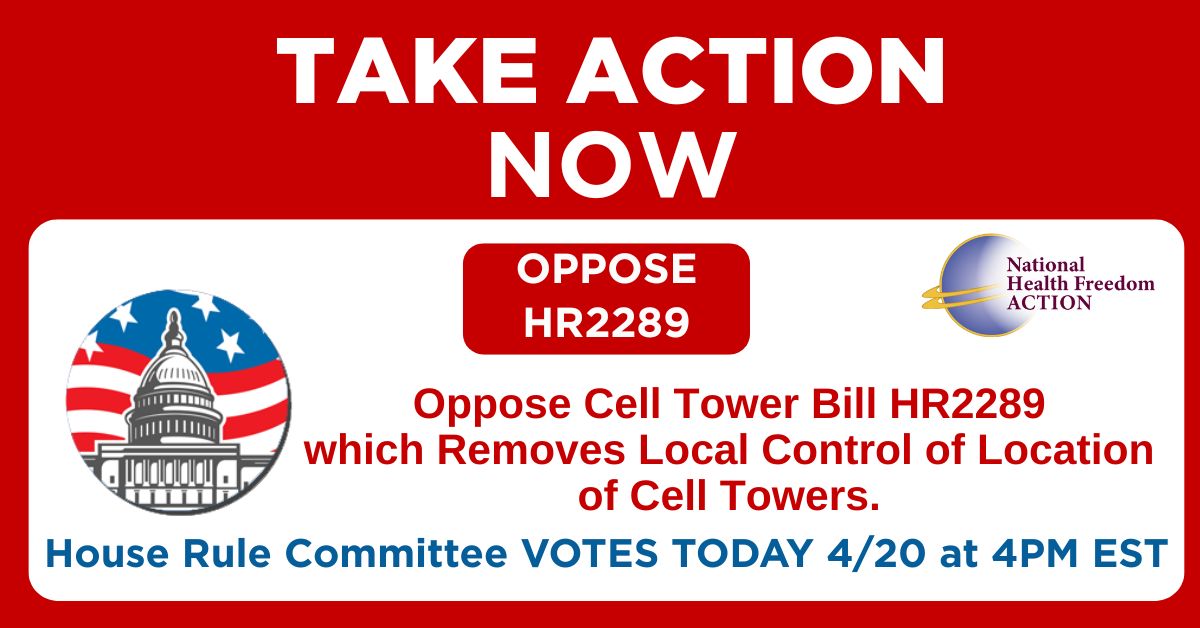 Take Action here to write your Congressman and Oppose House bill HR2289, the “American Broadband Deployment Act of 2026”. HR2289 is now in the House Rules Committee and the Committee is hearing the bill TODAY, April 20th at 4pm EST. OPPOSE Bill HR2289 which if signed into law will take away a local government's ability to regulate where and how they want a cell tower or antenna located and allow industry to put up towers next to your home, a school, or in a park where children play, without the ability for local goverments to consider environmental review or historical preservation!
